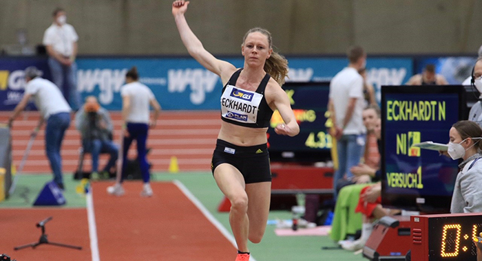 Die Titelverteidigerin war in Dortmund nicht zu schlagen: Dreispringerin Neele Eckhardt (LG Göttingen) fand gut in den Wettkampf und setzte mit 13,85 Metern im ersten Versuch die Konkurrenz direkt unter Zugzwang. Diese Weite sollte im Verlauf des Wettkampfs keine Konkurrentin mehr gefährden können. So sicherte sich die Göttingerin zum dritten Mal nach 2018 und 2020 Gold bei Deutschen Hallenmeisterschaften.