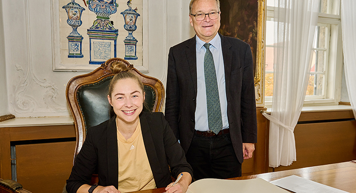 Bereits zweimal durfte sich Gina Lückenkemper in das "Goldene Buch" ihrer Heimatstadt Soest eintragen, zuerst 2015 und dann ein weiteres Mal Anfang September 2022 nach dem Gewinn von zwei EM-Goldmedaillen. Nun findet man ihr Autogramm im "Goldenen Buch" einer weiteren Stadt: Bambergs Oberbürgermeister Andreas Starke hatte die Sprinterin am Freitag zu einem Besuch im Alten Rathaus eingeladen (siehe Foto Bildergalerie). Seit 2019 lebt Gina Lückenkemper gemeinsam mit ihrem Freund in der oberfränkischen Sieben-Hügel-Stadt, die zum UNESCO-Weltkulturerbe zählt.