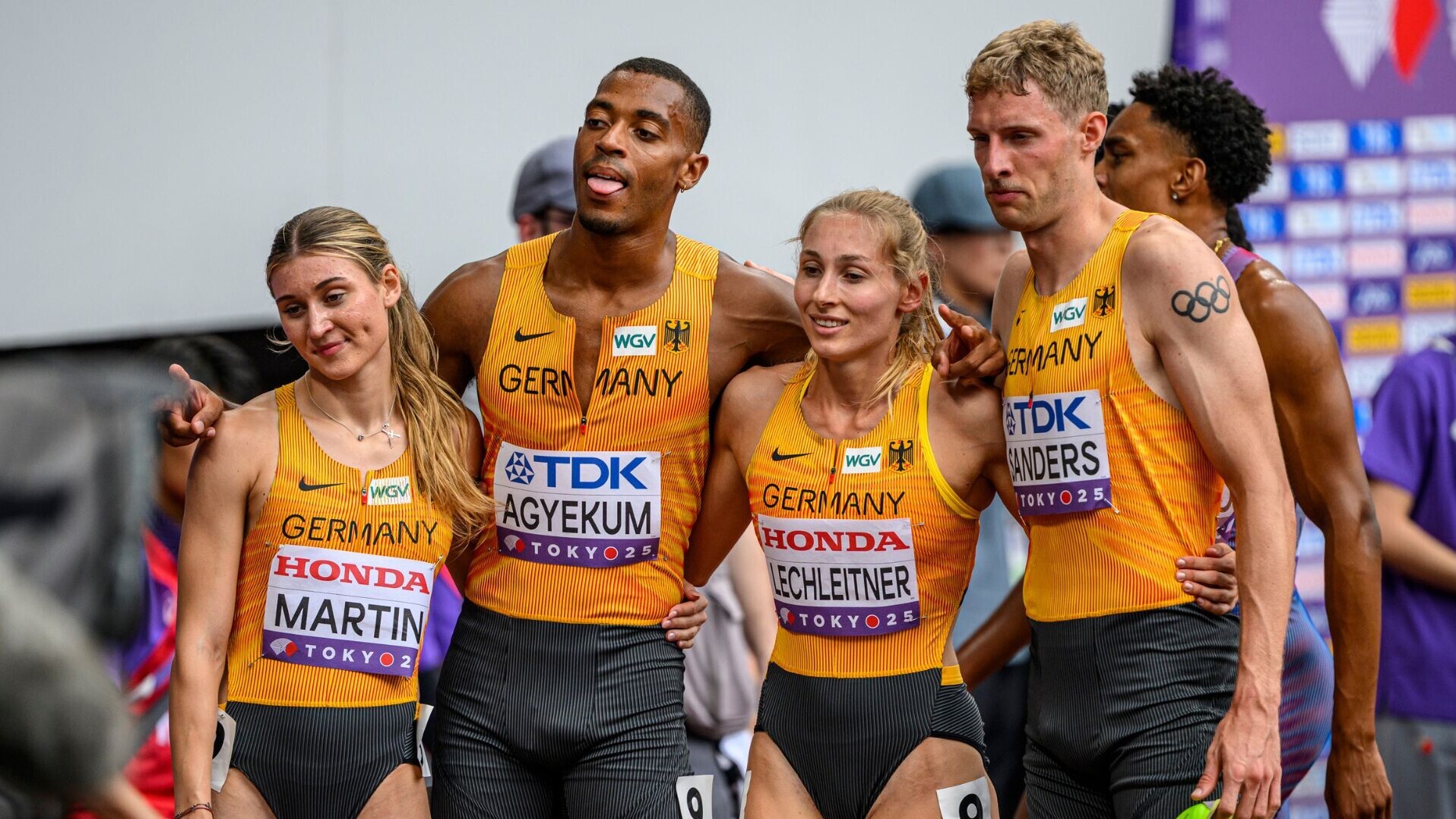 Mit einer Saisonbestzeit von 3:13,21 Minuten war das deutsche Team zur WM gereist. Diese Vorleistung konnten Manuel Sanders (TV Wattenscheid 01), Johanna Martin (1. LAV Rostock), Emil Agyekum (SCC Berlin) und Elisa Lechleitner (LAZ Ludwigsburg) am Samstagvormittag in etwa bestätigen: 3:13,61 Minuten wurden für das DLV-Quartett gestoppt. Doch die Konkurrenz spielte in einer anderen Liga, von Anfang an taten sich die deutschen Langsprinterinnen und -sprinter schwer, Anschluss zu finden. Letztlich reichte ihre Zeit nur für Rang sieben in ihrem Lauf.