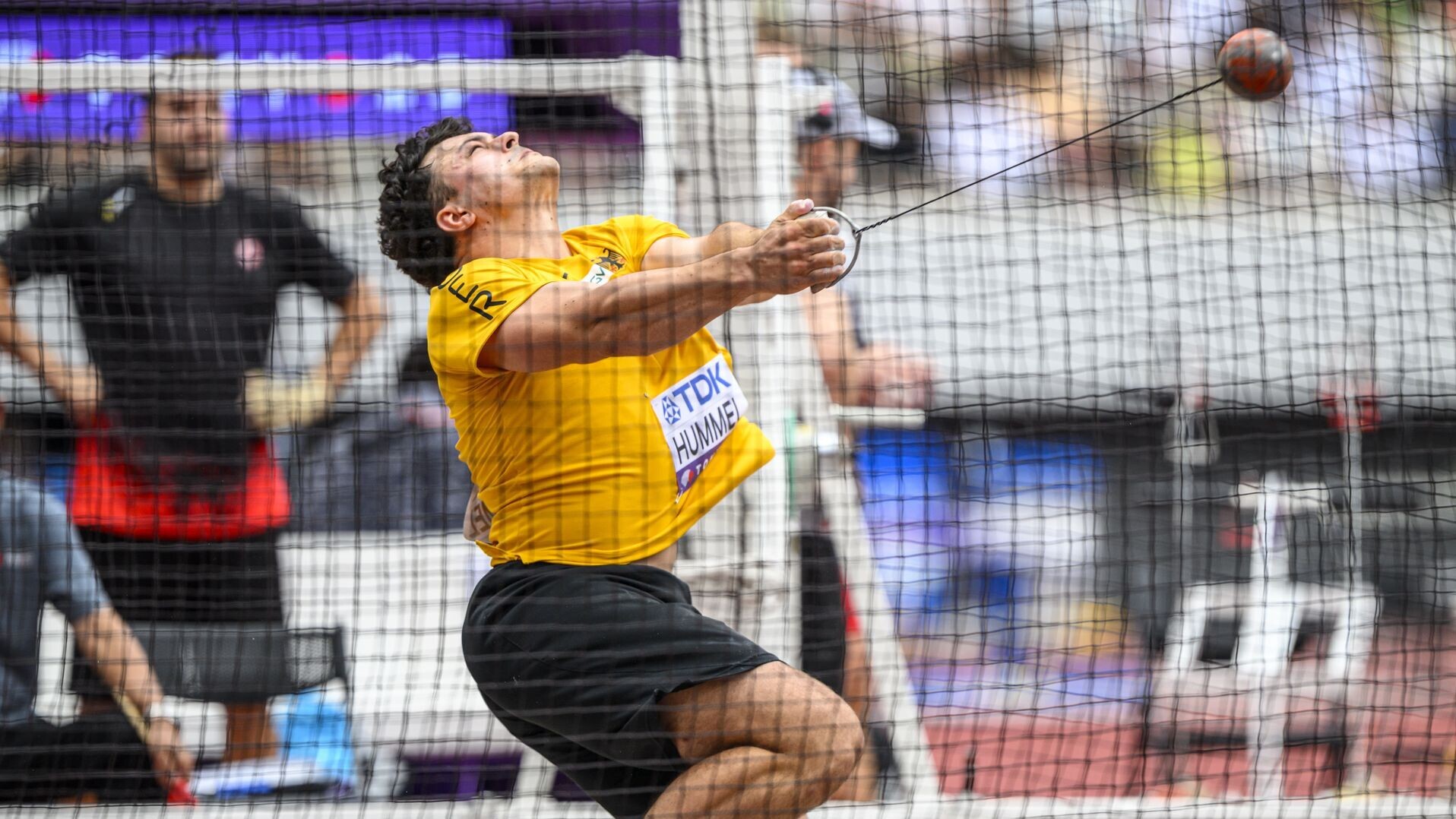 Nur einmal musste Merlin Hummel (LG Stadtwerke München) in den Hammerwurf-Ring steigen, dann hatte er sein Tagesziel erreicht: Der Hammer flog auf Anhieb auf 78,54 Meter, zwei Meter weiter als die geforderte Qualifikationsweite. Merlin Hummel ist damit der erste deutsche WM-Finalist im Hammerwurf seit Markus Esser im Jahr 2013.