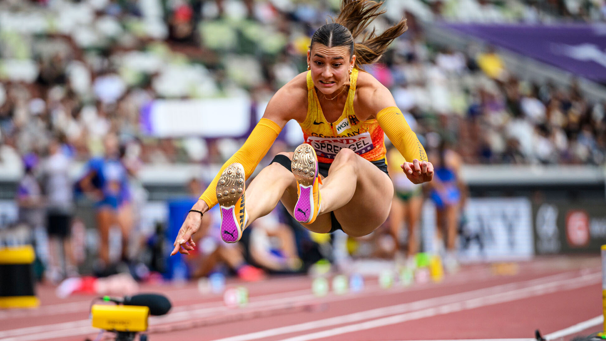 In ihrer Lieblingsdisziplin Weitsprung zählte Sandrina Sprengel (LG Steinlach-Zollern) am Samstagvormittag zu den fünf besten Siebenkämpferinnen im Feld. Nach einem Sicherheitsversuch auf 6,13 Meter steigerte sie sich im zweiten Durchgang auf 6,25 Meter. Damit ließ sie im Vergleich zur Bestleistung (6,42 m) zwar einige Zentimeter liegen, ist aber mit 4.663 Punkten und Platz neun weiterhin glänzend positioniert.