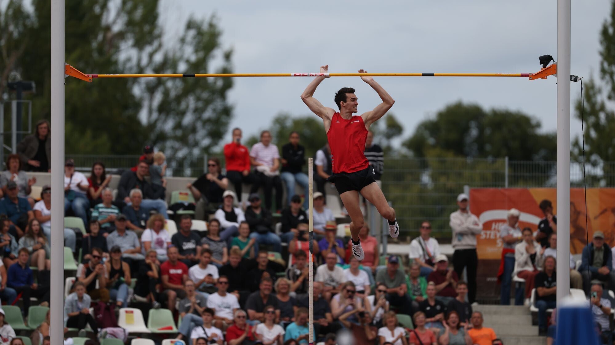 Mit diesem Gedanken im Hinterkopf ging 2022 plötzlich in allen Bereichen mehr: Ein bisschen mehr Geschwindigkeit im Anlauf, ein bisschen mehr Mut in der Griffhöhe, ein bisschen härtere Stäbe. Diese kleineren Stellschrauben wirkten sich in Summe enorm aus, auch die Technik machte Fortschritte. Plötzlich ging es konstant immer höher. „Das hat sich von 40er über 50er-Höhen immer weiter aufgebaut.“ Als DM-Vierter mit 5,70 Meter war er erstmals am DLV-Top-Trio im Stabhochsprung dran und bekam auch bei größeren Meetings einen Startplatz. „Das war ein mega-gutes Gefühl, endlich dabei zu sein.“