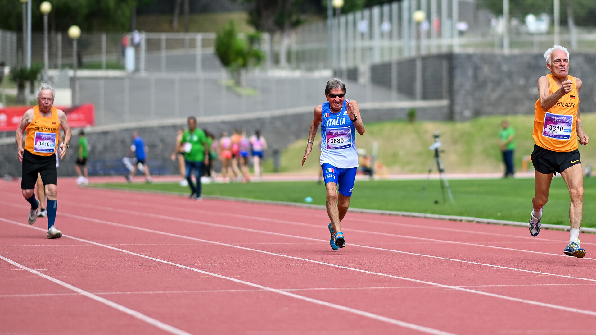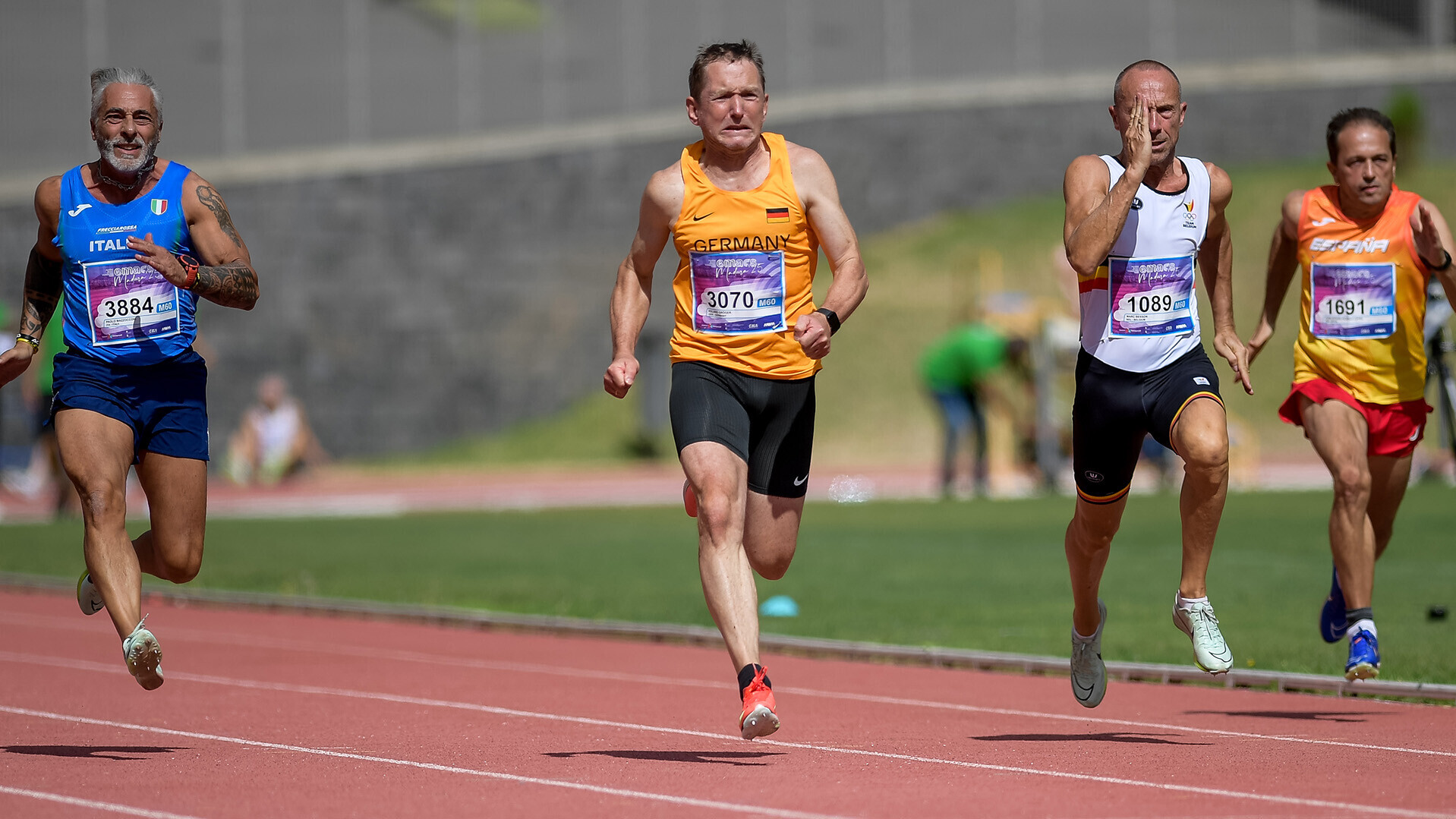 Den Reigen der deutschen Europameistertitel über 100 Meter eröffnete Roland Gröger (TopFit), der die M60 in 12,38 Sekunden deutlich gewann: „Ich freue mich sehr. Mit diesem Sieg heute habe ich nicht gerechnet. In Florida bei der Hallen-WM habe ich alle drei Sprinttitel über 60, 200 und 400 Meter gewonnen. Das Gleiche habe ich jetzt hier auch vor“, so der Doppeleuropameister von Madeira. Friedhelm Adorf (M80; LG Rhein-Wied) machte ebenfalls das Double perfekt und siegte in 15,01 Sekunden. Siegfried Richter (SSV Fortschritt Lichtenstein e.V.) gewann in der M90 in 20,12 Sekunden.