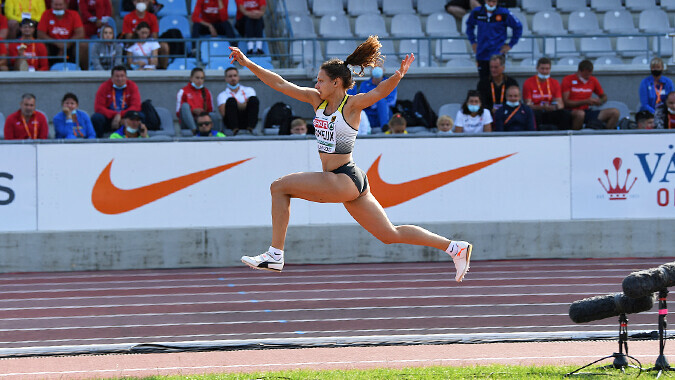 Mit der Premiere im Nationaltrikot klappte es endlich bei der U23-EM 2021. Und dort ging es in der Qualifikation sogar mit Bestleistung (13,63 m) ins Finale, in dem 13,36 Meter Rang fünf bedeuteten. Ein wichtiger Baustein für diesen Erfolg war die Schnelligkeit, aus demselben Jahr stammt die 100-Meter-Bestzeit von 11,74 Sekunden.