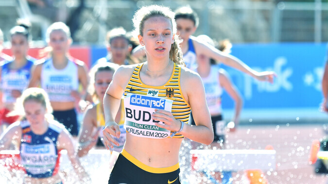 Steil weiter nach oben ging die Entwicklung im zweiten U18-Jahr, als die damals 16-Jährige bei ihrer Premiere im Nationaltrikot bei der U18-EM in Jerusalem (Israel) gleich aufs Podest stürmte: Silber (6:28,09 min) hinter Jolanda Kallabis (FT 1844 Freiburg), die später sogar die U18-Weltbestleistung bis auf 6:07,72 Minuten verbesserte. „Mit diesen Erfolgen bin ich immer mehr in den Sport hineingewachsen und Stück für Stück wurde mir bewusst, dass es Richtung Leistungssport gehen kann“, erzählt Adia Budde, die sich auch noch den Titel bei der Jugend-DM über die Hindernisse sicherte.