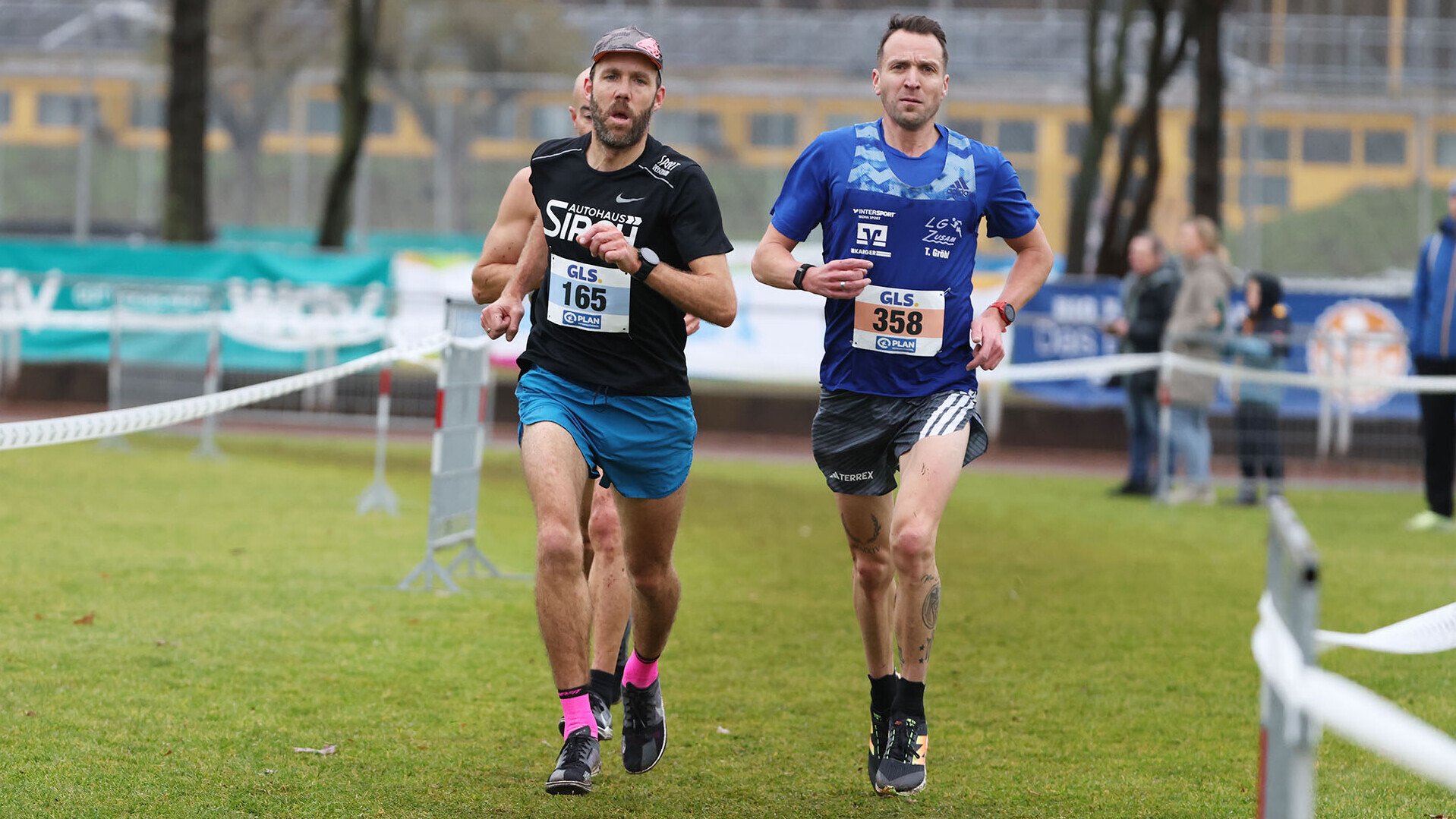 Auf der Langstrecke der Altersklassen M35-M45 nahmen die älteren Semester das Heft des Handelns in die Hand. Mit Thomas Kotissek (LG Allgäu) und Danny Schneider (TSG Schwäbisch Hall), am Samstag Zweiter und Erster auf der Mittelstrecke, gab ein M45-Duo den Ton auf der 7,5-Kilometer-Distanz an. Die Entscheidung um den Laufsieg und damit um den Titel in der M45 fiel erst auf dem Zielstrich.