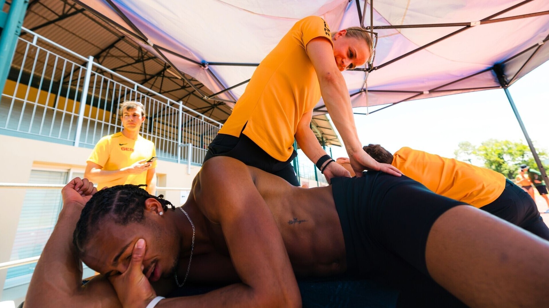 Neben den individuellen Trainingsprogrammen spielten auch wieder Team-Building und Wissensaustausch (siehe Fotos in der Bildergalerie) eine zentrale Rolle. Eng begleitet wurden Kugelstoß-Olympiasiegerin Yemisi Ogunleye (MTG Mannheim), Zehnkampf-Weltmeister Leo Neugebauer (VfB Stuttgart) und Co. in Südafrika von den DLV-Kompetenzteams „Medizin“, „Trainingswissenschaft“ und „Psychologie“. Workshops zu Themen wie Athletiktraining und Mediencoaching rundeten das Programm ab.