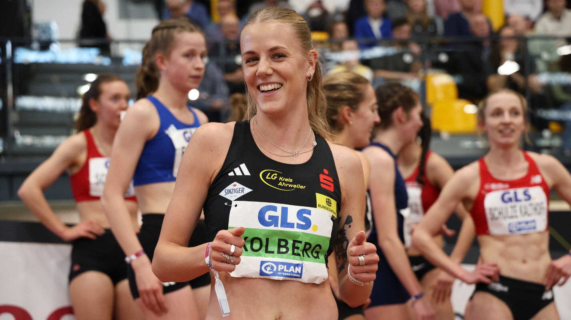 Für Geburtstagskind Smilla Kolbe, die am Sonntag 24 Jahre alt wurde, wurden auf Rang zwei 2:03,29 Minuten gestoppt, Bronze schnappte sich Jennifer Hauke (Hamburg Athletics; 2:04,75 min) knapp vor der sieben Hundertstel langsameren Verena Meisl (TV Wattenscheid 01).