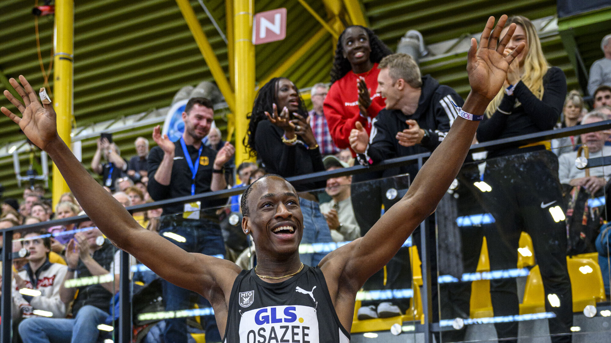 Eines war vor dem Dreisprung-Finale klar: Es würde einen neuen Deutschen Hallenmeister geben. Denn Abonnement-Meister Max Heß (LAC Erdgas Chemnitz) lässt aufgrund von Verletzungsproblemen die Hallensaison aus. Und so war es ein Youngster, der überraschend seinen ersten DM-Titel abräumte. Gleich im ersten Versuch flog Peter Osazee (MTG Mannheim) auf 15,80 Meter. Damit steigerte der 19-Jährige seinen Hausrekord von der U20-EM in Tampere (Finnland) um 19 Zentimeter. Der Jahresbeste Mohammed Amin Alsalami (LAC Berlin) kratzte im vierten Durchgang mit 15,78 Metern an der Führungsweite, es reichte aber knapp „nur“ zu Silber. Bronze gewann mit Bestleistung von 15,66 Metern der Chemnitzer Maximilian Skarke.