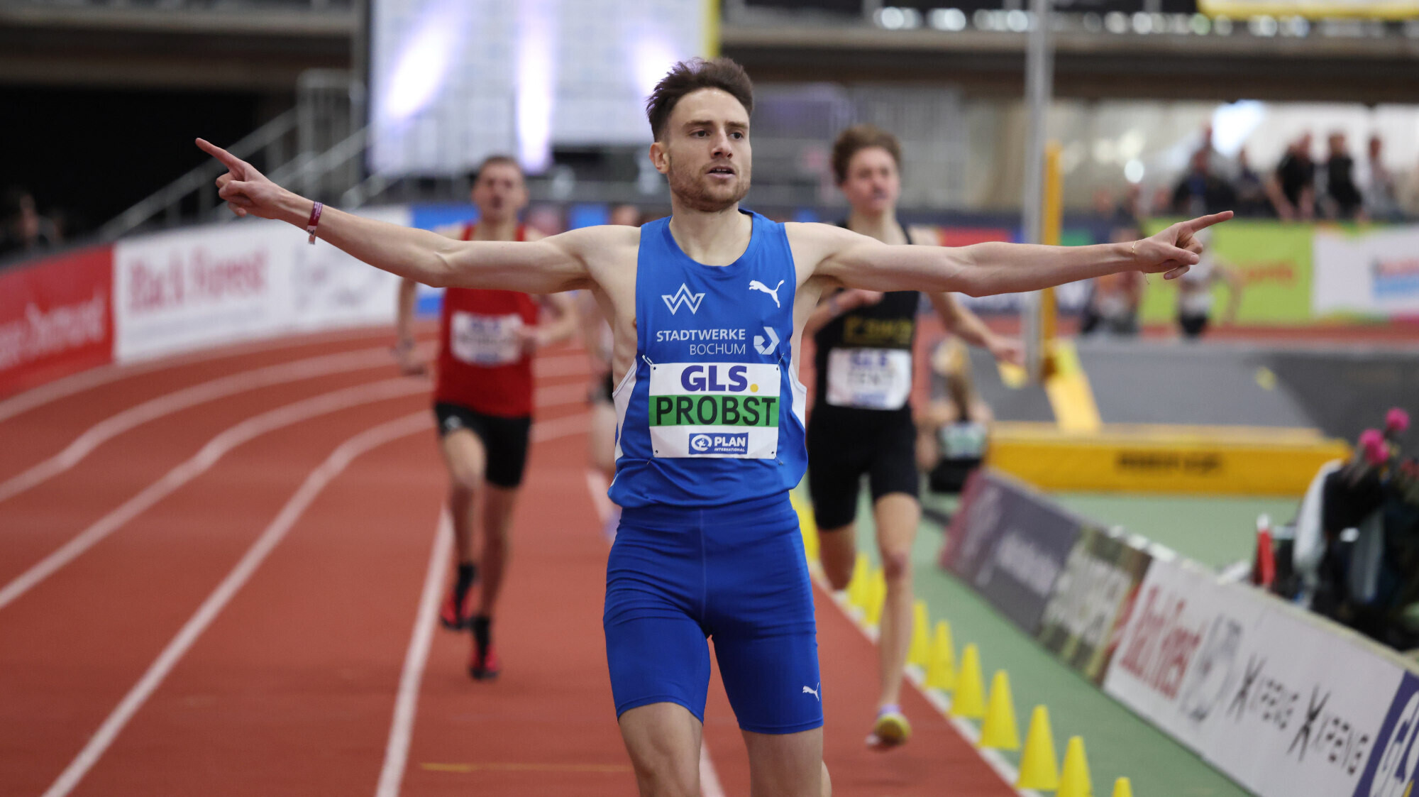 Zum Highlight wurde am dritten Tag der Hallen-DM in Dortmund das 800-Meter-Finale der Männer. Der Jahresbeste Alexander Stepanov (VfL Sindelfingen), der die Hallen-WM-Norm von 1:45,90 Minuten im Vorfeld bereits unterboten hatte, legte ein furioses Solo hin. Direkt nach dem Start ging er an die Spitze und baute seinen Vorsprung stetig weiter aus. So rannte der WM-Teilnehmer allein gegen die Uhr. Und die stoppte bei 1:45,84 Minuten. Damit stürmte der 21-Jährige im Alleingang zu einer neuen Bestzeit. „Ich bin zufrieden, ich habe gewonnen und bin Bestzeit gelaufen“, sagte er und verriet zugleich, dass er sich sogar noch mehr zugetraut hatte: „Ich war eigentlich auf Kurs für den Deutschen Rekord, den wollte ich heute brechen. Aber ich bin viel zu schnell angegangen.“ Der deutsche Hallen-Rekord von Nico Motchebon steht seit 1995 bei 1:44,88 Minuten.
