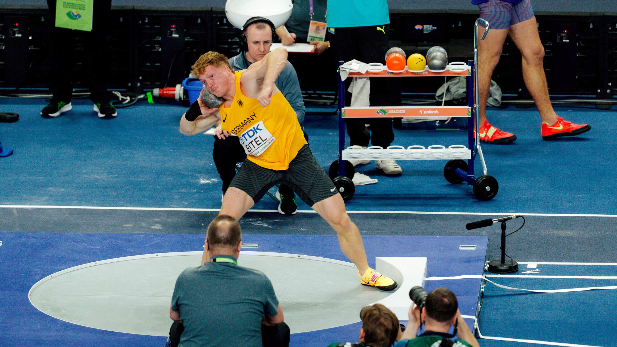 Nach dem Dämpfer im Weitsprung gelang Manuel Eitel im Kugelstoßen wieder ein ordentliches Ergebnis. Mit 15,10 Metern bewegte er sich in ähnlichen Regionen wie in seinem besten Hallen-Siebenkampf, bei dem er die Kugel auf 15,27 Meter befördert hatte. Der Ulmer rangiert mit 2.520 Punkten auf Platz zehn, das Feld ist jedoch so dicht zusammengerückt, dass zum Franzosen Téo Bastien auf Rang fünf lediglich 34 Punkte fehlen. Platz drei im Zwischenklassement hat der zweite US-Amerikaner Heath Baldwin (2.632 pt) inne, dem Makenson Gletty (2.617 pt) mit seinem starken Kugelstoß ordentlich auf die Pelle gerückt ist.