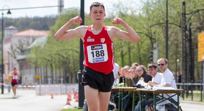 Dass Nils Brembach (SC Potsdam) überhaupt in Naumburg an den Start gehen konnte, hatte er Mannschaftsarzt Dr. Matthias Kieb zu verdanken. Fußprobleme hatten ihn bis wenige Tage vor den Meisterschaften noch ausgebremst. „Durch die sehr gute Behandlung konnte ich schmerzfrei an den Start gehen“, sagte der 25-Jährige, der bei seinem Saisoneinstieg in 1:23:18 Stunden Vierter wurde. Am Schluss fehlten die Trainingskilometer. Das Höhentrainingslager in Mexiko musste er nach einer Woche krankheitsbedingt abbrechen. Zurück in Deutschland kurierte er sich aus und organisierte anschließend selbst ein zweiwöchiges Trainingslager auf Mallorca, wo ihn sein Vater betreute.