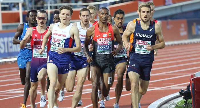 Es war ein sehr taktisches 1.500 Meter-Finale der Männer, bei dem auf der Zielgeraden auf Biegen und Brechen gefightet wurde. Mittendrin der Frankfurter Homiyu Tesfaye, der sich am Anfang zurück hielt und sich dann 900 Meter vor Schluss nach vorne arbeitete. Gemeinsam mit dem Franzosen Florian Carvalho und dem Briten Jake Wightman suchte er nach der besten Ausgangsposition.