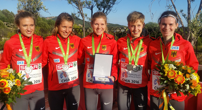 Auch die Auftritte der weiteren DLV-Läuferinnen beeindruckten: Caterina Granz (LG Nord Berlin) hielt lange Tuchfühlung zur Spitze und kam in 19:50 Minuten auf Rang sechs ein. Carolin Kirtzel (LT Haspa Marathon Hamburg; 19:54 min) rollte das Feld von hinten auf und schob sich als Neunte noch in die Top Ten. Maya Rehberg (SG TSV Kronshagen/Kieler TB; 20:17 min) wurde 16., Franziska Reng (LG Telis Finanz Regensburg; 20:43 min) 27. In der Summe der vier besten Platzierungen bedeutete diese Mannschaftsleistung Platz zwei und damit Silber für das Team, nur knapp hinter Großbritannien und deutlich vor Gastgeber Italien.