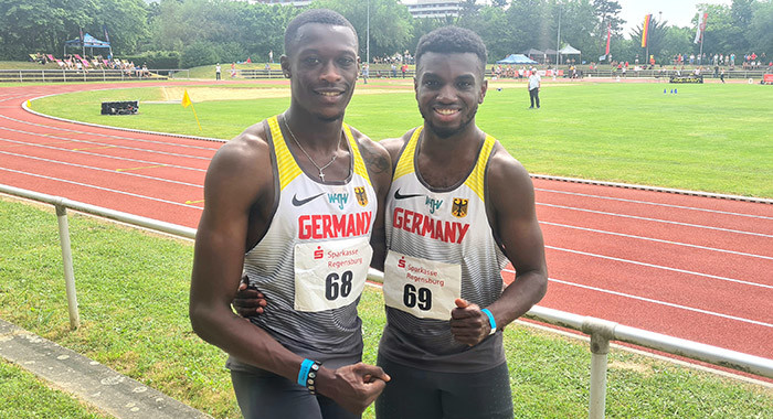 Die Hamburger Sprinter Lucas Ansah-Peprah (21) und Owen Ansah (20) sind in dieser Saison in die nationale Sprint-Spitze vorgestoßen. Über 200 Meter holte Owen Ansah in Braunschweig den DM-Titel, Lucas Ansah-Peprah über 100 Meter Silber. Seit 2019 trainiert das Duo, das im Übrigen trotz Namensähnlichkeit nicht verwandt ist, beim ehemaligen Weltklasse-Weitspringer Sebastian Bayer. Im Interview am Rande der Gala in Regensburg erzählten die beiden, welchen Anteil ihr Coach am Erfolg hat und wie sich das gemeinsame Staffel-Gold bei den World Relays anfühlte.